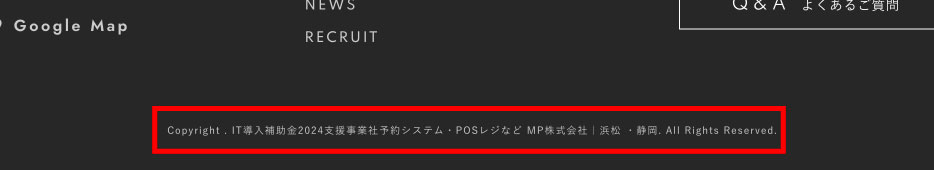 コピーライトにキーワードを入れることが評価に直接繋がるわけではありませんが、キーワードが全てのページに反映されることでこのホームページにはどんなことが記載されているのかがより鮮明になります。そのため、SEO対策の一環としてキーワードを組み込んでおくことをお勧めします。
